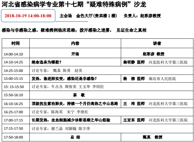 主辦單位:河北醫學會感染病學分會;河北省醫師協會感染科醫師分會;河北省傳染病質量管理與控制中心;石家莊市醫學會感染病學專業委員會